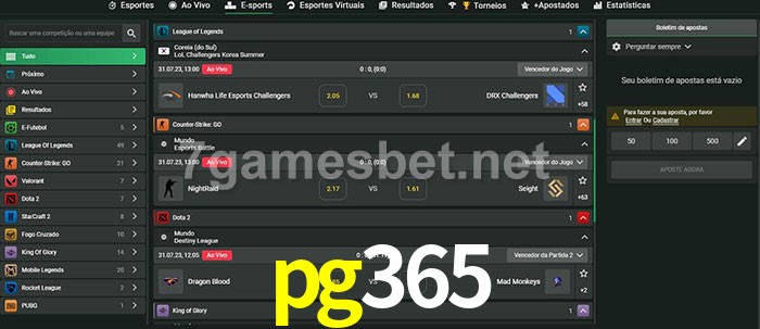 O pg365 oferece uma grande seleção de opções de apostas em e-sports com probabilidades competitivas